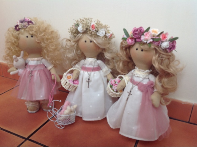 Estas tres preciosidades ya tienen dueñas. Os presento a Carmela, Mariana y Julieta. Tres rubias que son un regalo de Primera Comunión para las tres hermanas más lindas.